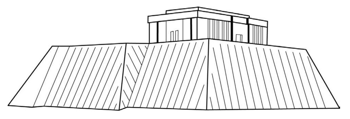 - Ziggurat: A massive raised platform with four sloping sides, shaped like a truncated pyramid.