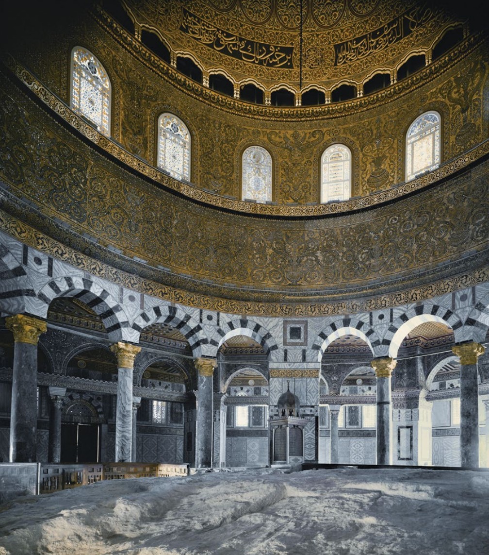 Jerusalem. Islamic, Umayyad. 691–692 C.E. Stone masonry and wooden roof decorated with glazed ceramic tile, mosaics, and gilt aluminum and bronze dome.