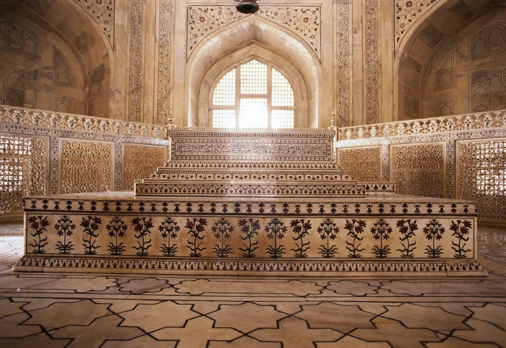 - Decoration: Pietra Dura (inlay) of flowers and calligraphy.