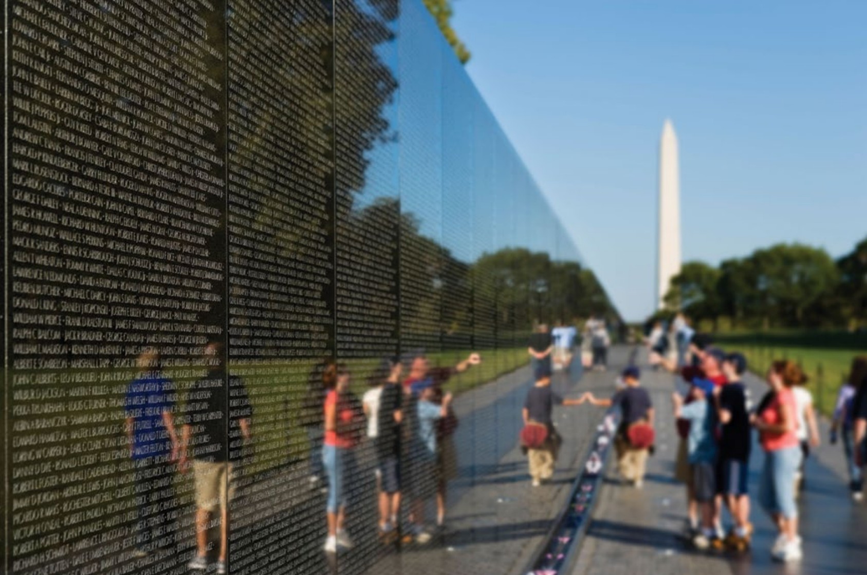 "A highly controversial minimalist monument that cut a scar into the earth, listing the names of fallen soldiers in chronological order. Maya Lin, an undergraduate student at Yale, won the blind design competition. Her design was criticized for being abstract, black, and lacking heroic figures, leading to the addition of a more traditional statue nearby. It has since become a deeply healing site for veterans and families."