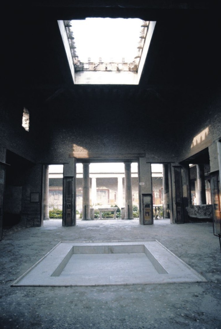 - Atrium: Features an impluvium (basin) to catch rain from the compluvium (roof opening).