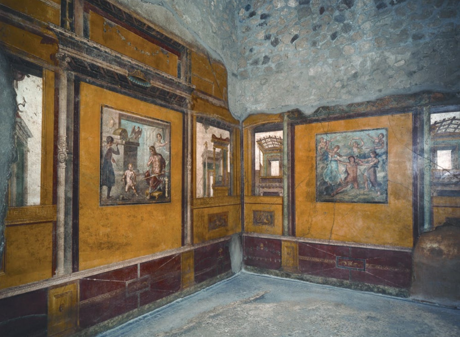 - Fourth Style Wall Painting: A mix of architectural illusion, framed panel paintings, and chaotic fantasy.