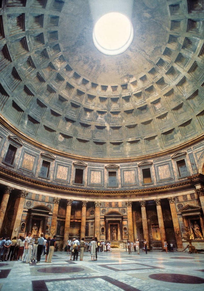 "The Temple of All Gods. Its unreinforced concrete dome is still the largest in the world today. The oculus acts as a spotlight, tracking the sun across the interior like a cosmic clock."