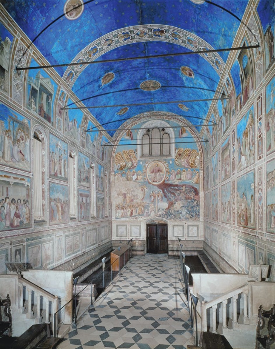 "The dawn of the Renaissance. Enrico Scrovegni, a banker, commissioned this chapel to atone for his sin of usury. Giotto’s frescoes inside revolutionize art by introducing emotional realism, depth (shading), and human drama. The "Lamentation" scene is a masterclass in composition and grief."