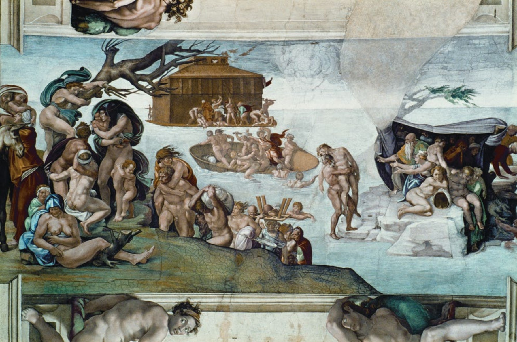 - Ceiling: 9 panels of Genesis (Creation, Adam, Eve, Flood, Noah).