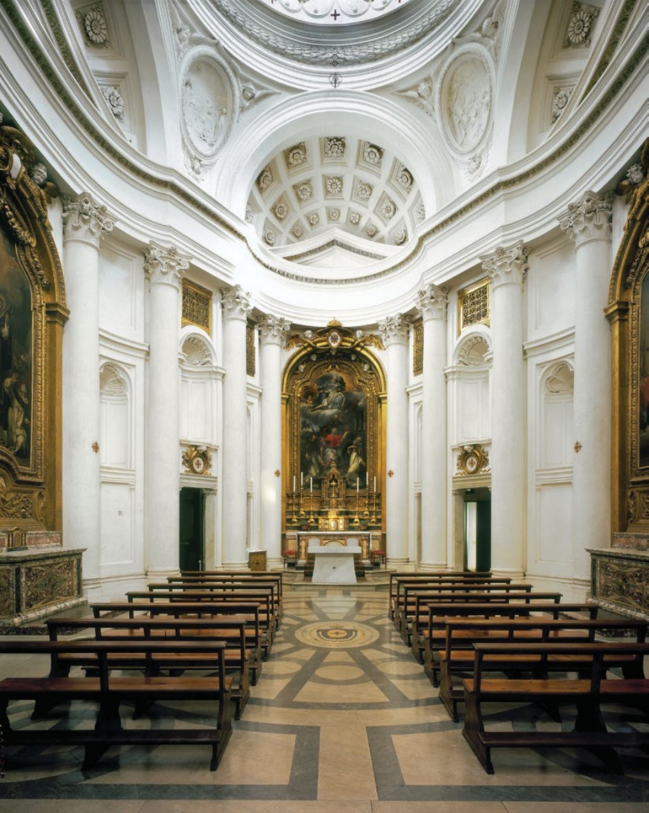 "A small church that packs a massive punch. Borromini, a rival of Bernini, treats the architecture like sculpture. The facade undulates in a wave-like motion (concave-convex), and the interior dome is an oval with complex geometric coffers (crosses, hexagons, octagons). It is the pinnacle of Baroque mathematical complexity."